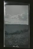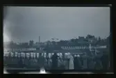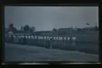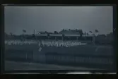 En grupp män spelar fotboll på en fotbollsplan/ äng. "Bollplan vid Nybble 1923."