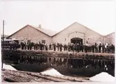 Hasselfors Bruk, 1902. Utsikt över klensmedjan, stallet, redskapsboden, smält- och stångjärnssmedja, masugnen, rostugnen och kolhuset.