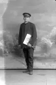 Magni Andersson, ett original från Stenbrohult, 1940. I dörren till Spritbolaget, Norra Järnvägsgatan 10, Växjö (?).