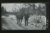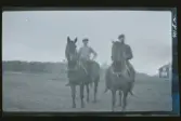 "Kalle och Ivar, Backa." Två män till häst på en åker.