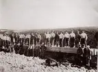Byggandet av Skara - Timmersdala järnväg 1909. Med på bilden: "Norda-Lasse" från Berg. Loket "Håkantorp".