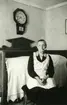 INTERIÖR AV BOSTADSHUS. PÅ VÄGGEN TVÅ RÖKPIPOR OCH I RUMMET EN GJUTJÄRNSKAMIN.