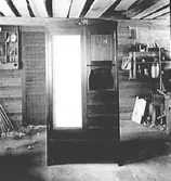 Vitrinskåp i finrummet på Bergslagsgatan 5 B i Nora, 1981