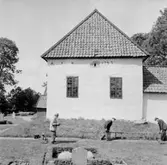 Irsta sn, Kusta gård. Två män lägger vasstak på Kusta säteri, 1920-tal.