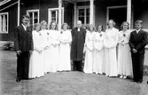 Götlunda prästgård. 1. Gunnar Nordkvist, Väring 2. Stina Källgård 3. Birger Källgård 4. Oskar Svensson ? 5. Ivar Hallerbäck 6. Gullan Hallerbäck