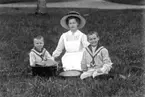 Enligt fotografens noteringar: "Tre bröder." Plats: Kasen Datum: 15 April 1897 Tid: Kl 4.30 e.m. Ljus: Solsken Bländare: No 2 Objektiv: Svenska Express Exponering: Hastighet No: 2 1/2 Framkallning: Hydroechinon, Eikonogen