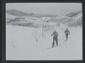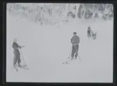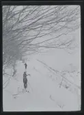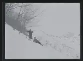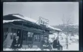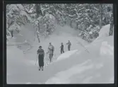 Gotlandsbåten S/S Drotten har fastnat i isen utanför Landsort. Isbrytaren Ymer till höger. Två män står på isen. Vintern 1941-1942 var mycket kall och stora delar av Östersjön var frusen. Den 4 mars fastnade Drotten och riskerade att skruvas ner av isen. Kapten Rubarth meddelade att alla passagerare och all besättning skulle lämna fartyget. De kunde gå över till isbrytaren Ymer som kommit till undsättning.