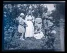 Sven, Gudrun och Elsa sitter ute på backen som blommar av vitsippor vid familjen Morthensens villa Solveden, Djursholm.