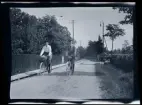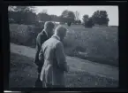 Två flickor, Gudrun och Elsa, utklädda. Porträtterade på balkongen till familjen Morthensens villa Solveden, Djursholm.