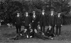 Enligt senare noteringar: "Familjegrupp utanför manbyggnaden på Åtorps gård (?)." (BJ)