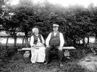 Ark med två monterade foton och text: "Gammal man som rensar levern ur torsk och kolja och lägger den i en tunna för sig."