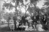 Englunds i Skommarhyttan, Snellsbacken i bakgrunden. Stående från vänster Anna Björk, Axel Björk, Anna Westlund, Gustava Englund, Elna Westlund,Anlice Björk, Bernhard Björk, , Eskil Westlund. Sittande från vänster Gustav Englund, Erik Björk, Anna Stina Björk. Längst fram sitter barnen Astrid Björk och Marcus Englund