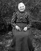 EN ÄLDRE DAM SITTANDE I EN KORGSTOL