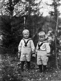 "Bröderna Renhall." Två små pojkar i likadana kläder. Lima socken, Dalarna. Till vänster sannolikt Karl-Erik Renhall.