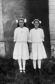 "Lilly och Rut." Två flickor i likadana klänningar. Lima socken, Dalarna.