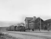 NHJ lok 3 med tåg ,(Norra Hälsingsland Järnväg) Station anlagd 1896. Tvåvånings stationshus i trä