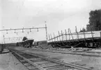 Järnvägen under omläggning med bron vid Edsgatan i bakgrunden och Norra Järnvägsgatan trädbevuxen Järnvägsområdet Väneersborg