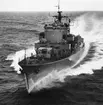 Sista krigsförbandsövningen på Jagaren Hallands långresa 1982. På bilden 08-skjutning