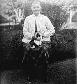 Greta Bjurström med sin stora kisse Foto: Lisa Jonsson, Hörby, 1913. Fototid: 24/12 1913.