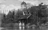 Tryckt text på vykortets framsida: "Uddevalla. Parti från Bäfveån".