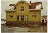 Arbetsdagen är slut. Folk strömmar ut genom grindarna vid "vakten" (byggnaden till vänster) på CVA, Centrala Verkstaden Arboga.