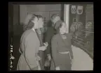 Porträtt av två kvinnor i kolt som står vända emot varandra.