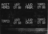 Gamla brukskontoret. Vägg mot söder, första rummet med hyllor, karaff, lådor med "glas" anvisningsskyltar, tågtidtabell.