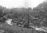 Del av spåret från Råbäcks kalkbruk till Råbäcks hamn. Skånska Cement AB:s stora kalkstensbrott mellan Hällekis och Råbäck.