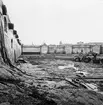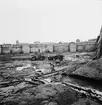 Traktorer parkerade på Hälsingegatan i Gävle. Reportage av Tollertz, Norrlands-Posten den 2 oktober 1956.