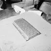 Frimärksförlaga till frimärket Svenska flaggans dag (utgivet 6/6) 1955. Två stycken olika frimärken utgivna till 50-årsminnet av den nya ljusare flaggan som ej har unionsmärke. Foto 15/11 1967. Konstnär: Mark Sylwan. Ej uttagna förslag. Textförslag, renritning i tusch, vit färgtäck och blyerts. Valör 10 öre.