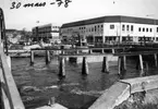 Klaffbron över Göta Kanal vid Töreboda. Premiärhöjningen. Bilden är tagen västerifrån i mars 1950.