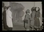 Porträtt av två kvinnor i kolt som står vända emot varandra.