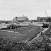 Arbetsfordon, traktorer parkerad på rad. Norr om Halmstad. Idag korsningen E6 - Riksväg 26.