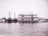 Ekensbergs varv 1970: varvskontoret, tidigare Ekensbergs värdshus. På höjden bakom varvskontoret ritkontoret.