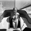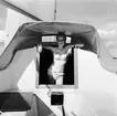 Nybyggd Konsum-butik med en bensinpump av märlket Standard utanför.