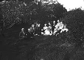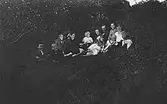 Sittandes med hatt Enok Eriksson, stående damen längst till höger Edit Olsson, Nordansjö.