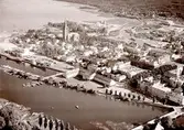 Skara. Stadshotellets baksida med den gamla uthuslängan åt öster. Ingenjör Ernst Lefvanders samling, Skara.