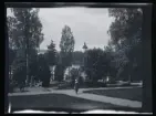 Skioptikonbild med motiv från St. Johannis kloster, Stralsund. Bilden har förvarats i kartong märkt: Resan 1912. Stralsund.. Text på bild: "St. Johannis kloster".