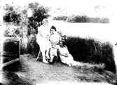 Kaffestund i solskenet. Böjträstolarna har plockats ut och satts runt trädgårdsbordet.