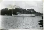 Foto från omkring 1965 visande passagerarmotorfartyget Ilmatar av Helsingfors, under gång på Stockholms ström.