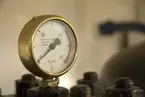Reflektion av kran i vattenpöl på botten av Gustav V:s torrdocka, Beckholmen, Stockholm.