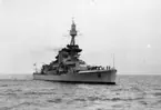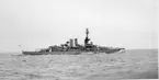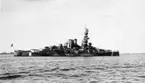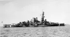 Bilden visar Pansarskeppet Gustaf V och kustjagaren Munin vid nya utrustningskajen.