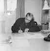 Karlskrona Örlogsvarv, plåtverkstaden. Bockning av plåt i 750 tons hydraulisk skeppsbyggeripress 27.4 1957.