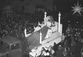 Foto av pojkar och flickor klädda i traditionella kläder där flickorna bär den holländska mössan och pojkarna de rymliga ullbyxorna, 1924-25.