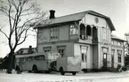 Mjölktransport - Oskar Janssons buss med mjölkkannor på släpet, hamnen i Öregrund, Uppland