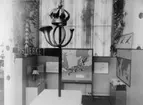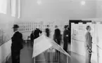 Utställningens första-dagsstämpel är eftersökt. Brevskörden första dagen stämplas här, i moderna postkontoret på 2 trappor, av Georg Nilsson, bankavdelningen, under överinseende av en yngre filatelist.