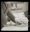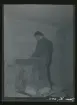 Man tillverkar halmdekorationer. Skansen, Stockholm.