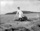 Enligt senare noteringar: "Tre badflickor: systrarna Anna, Valborg och Judith Johansson vid "vadräckan" i Slävik".