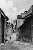 Ett av Krämarhusen upplyst från mot väster, 1989