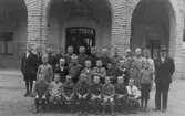 Daretorp omkring 1925. Hos Olssons i Hulan med sin arrendators familj August. Sittande till höger dottern Märta m. make Emil Berg, Ebba ?, David P., Johan P., August P., Hilma P. och Ingrid Pettersson.